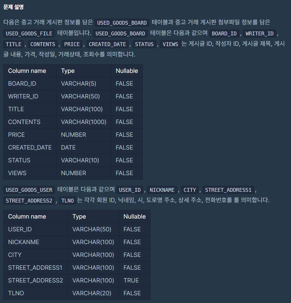 | [프로그래머스][MySQL][Lv. 3] 조회수가 가장 많은 중고거래 게시판의 첨부파일 조회하기 (0) | 2023.05.14 |