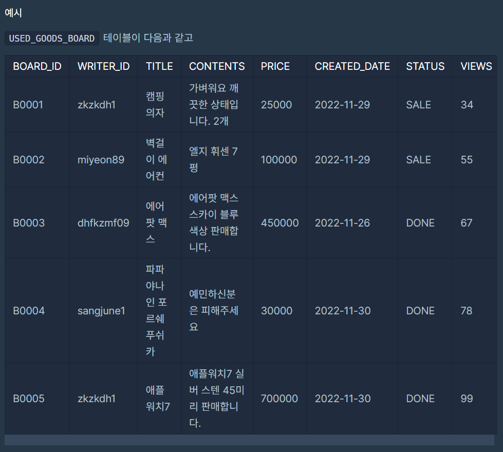 FROM USED_GOODS_BOARD INNER JOIN USED_GOODS_USER ON WRITER_ID = USER_ID