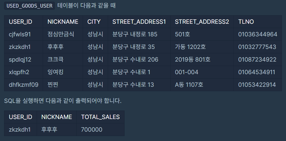 | [프로그래머스][MySQL][Lv. 1] 조건에 부합하는 중고거래 댓글 조회하기 (0) | 2023.05.14 |
