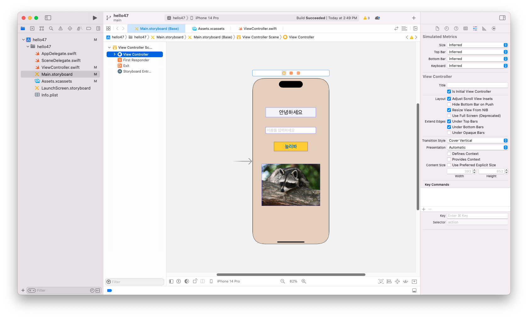 여기서 Is Initial View Controller를 체크해주면 된다.