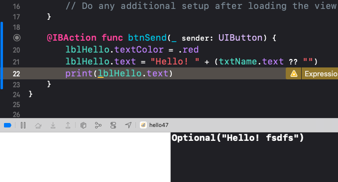 실수로 Label 등의 이름을 잘못 지정해서 코드 상으로만 다시 생성했을 때 에러가 생길 수 있는데 이는 하나의 요소에는 하나만 연결되어야 하는데 지금은 2개가 연결되었기 때문이다. 이때는 Connections inspector에서 잘못 입력했던 것을 x버튼을 눌러 연결 해제해주어야 한다.