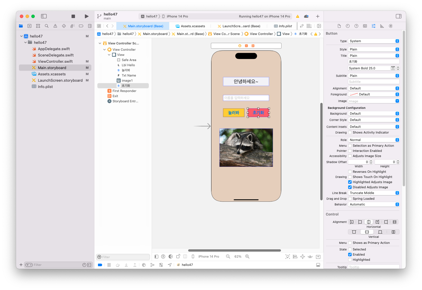 버튼을 눌렀을 때 레이블의 내용이 바뀌도록하는 코드를 다시 작성해보았다.