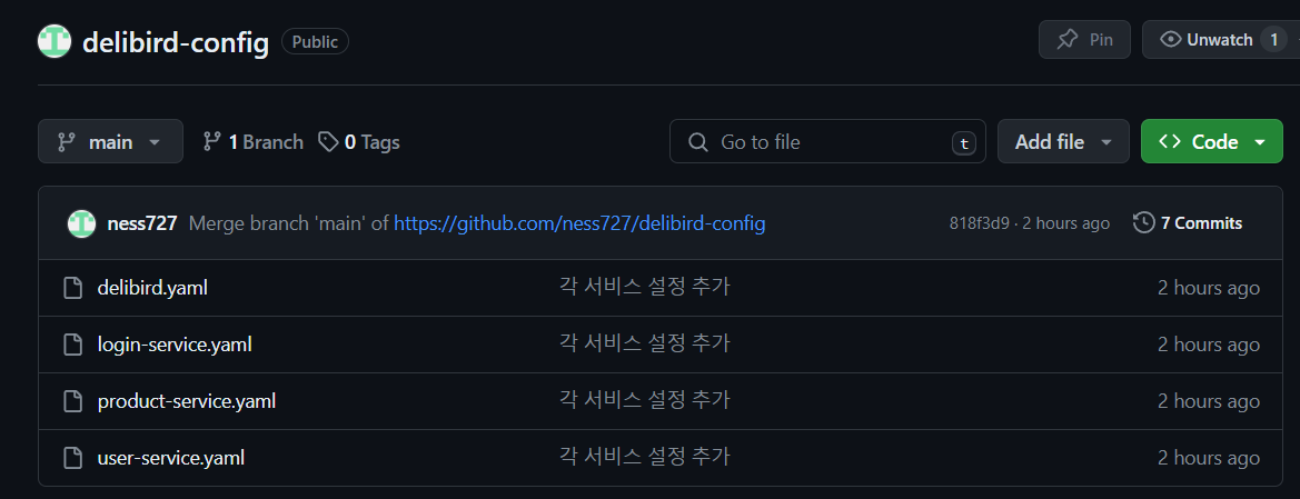 GitHub - ness727/delibird-config: delibird 서비스의 config 저장소입니다.