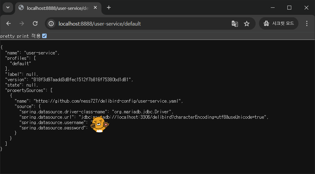 이런 방식으로 github 저장소에 저장되어 있는 설정 파일에 민감한 정보들을 encrypt하여 {cipher}를 접두사로 저장해 두면 해당 서비스에서 설정 파일을 가져다가 사용할 때 decrypt된 원래 원하던 정보로 접근할 수 있다.