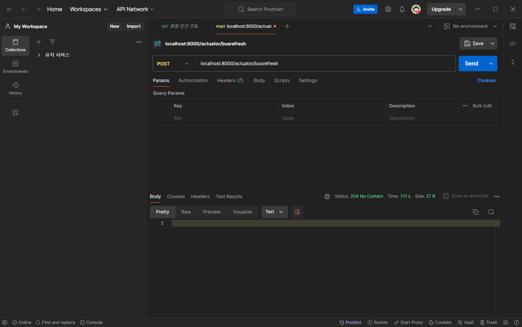 만약 어떤 서비스가 실행 중일 때 설정을 변경했다면 bus에 연결된 서비스 중 아무 서비스에서 actuator/busrefresh를 호출해주면 된다.