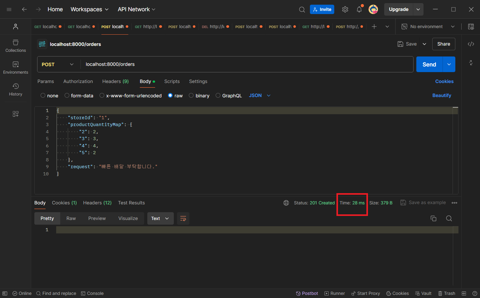 Kafka로 주문 내역을 저장할 때는 20후반 ~ 30후반 ms만큼의 시간이 걸렸다.