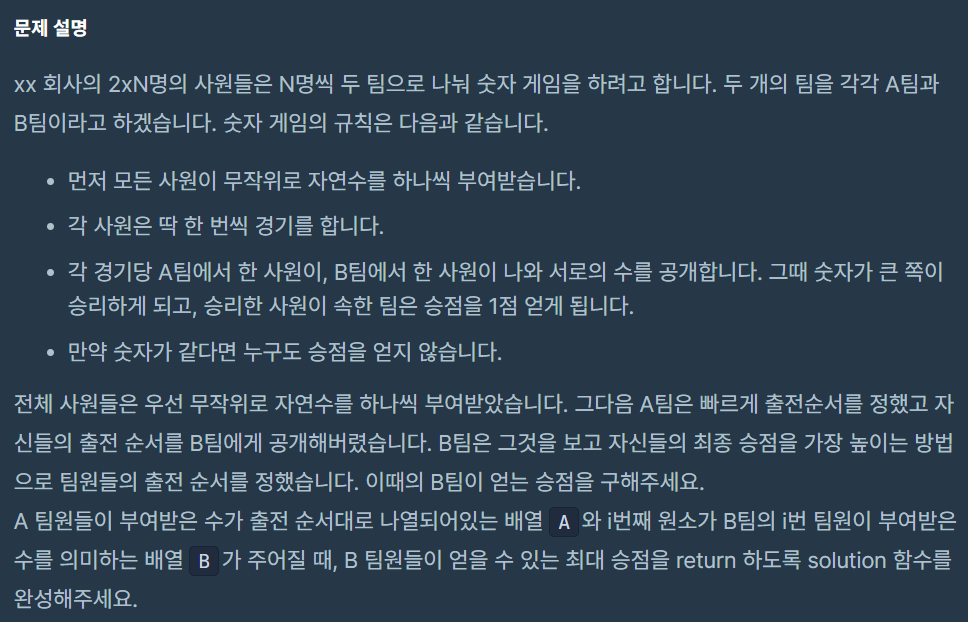 가장 높은 수를 가진 사람대로 세워놓고 이길 수 있는 것만 이기자 하는 것이 최선의 방법이다.