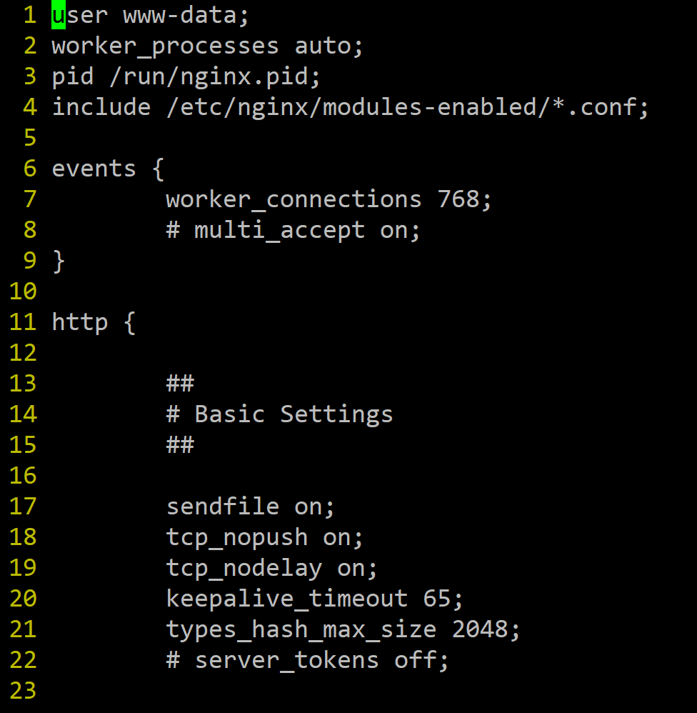 /etc/nginx/ 내의 nginx.conf 파일에 동작 관련 설정 내용이 작성되어 있다.