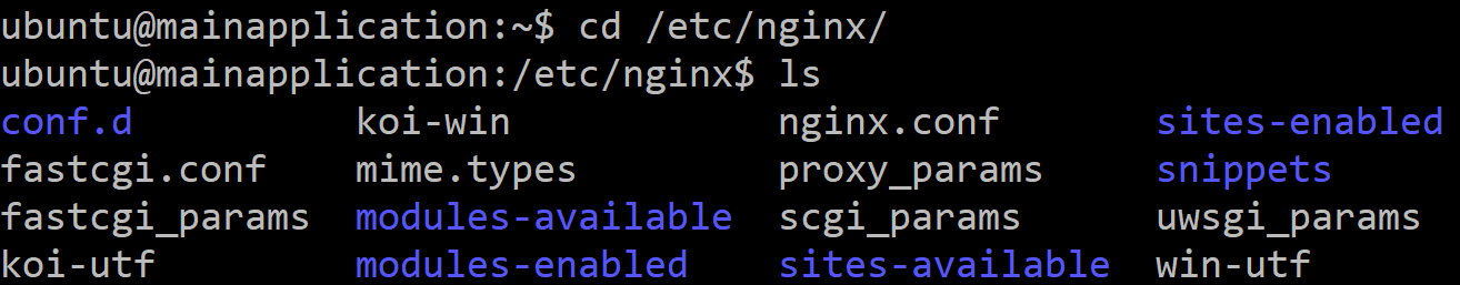 설치 후에 /etc/nginx/ 경로로 들어가 보면 위와 같은 파일과 폴더들을 확인할 수 있다.