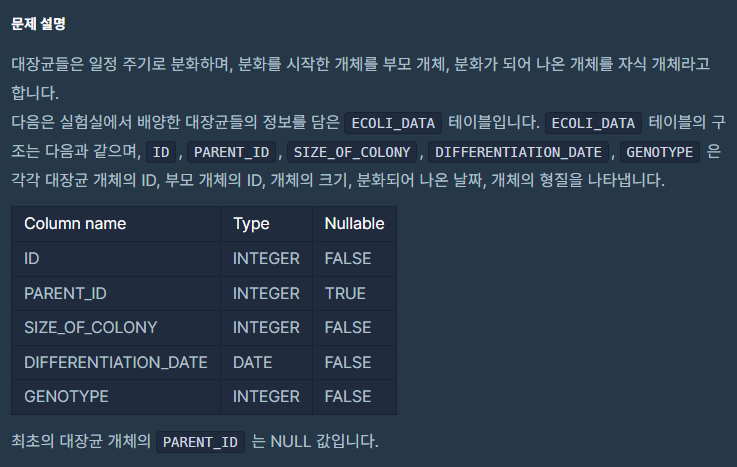 | [프로그래머스][MySQL][Lv. 4] 특정 세대의 대장균 찾기 (0) | 2026.01.01 |
