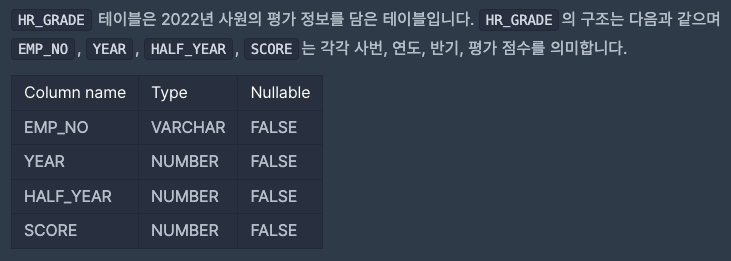 먼저 상하반기 점수를 직원 별로 합을 구하고 순위를 구해서 1등인 직원만 가져오면 된다.
